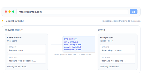 It's a very short guide explaining how things work, starting with a URL which turns into an HTTP request that then uses DNS to resolve to an IP address which in turn establishes a TCP connection that then transfers data as HTML which is then rendered by the browser into something you actually see. Neat!