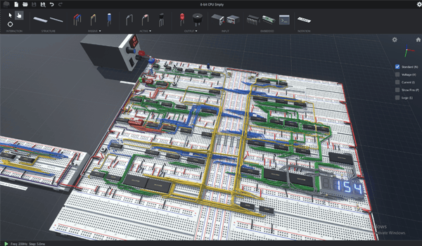 This looks extremely complex and from what I understand it's all physically accurate. If you know how to build circuits in real life you should be able to build them here. The dev mentions how you can build Ben Eater's 8-bit CPU and it runs at over 600Hz.