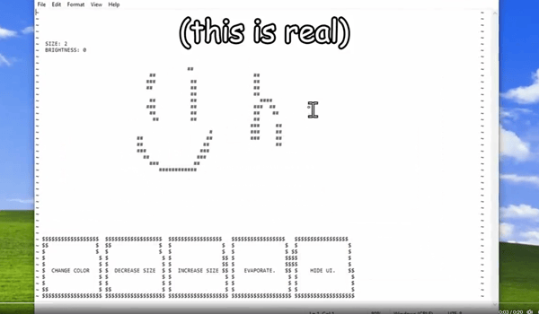 You can click to draw anything, change the size of the brush and erase the drawing in a satisfying manner. Yup it’s Paint inside Notepad.