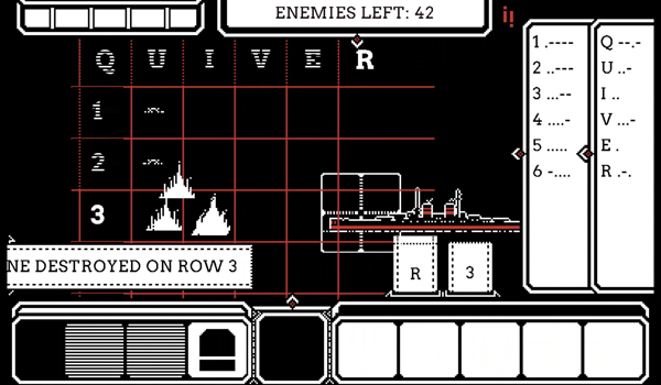 Now here is one game called MORSE which is all about teaching you Morse Code! It's a strategy game where you have a grid with numbers on one side and letters on the other. Using Morse code you define the number grid to select as well as the letter, then you fire off an artillery strike and sink the enemies battleship.