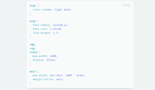 Modern web development can be insanely complex, but it doesn't have to be. In order for a website to look decently good it just needs a handful of things, this nice guide covers about two dozen lines of CSS code that are enough to make a good looking website.